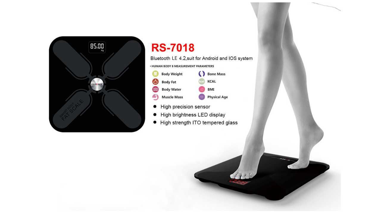Surface Ground:Hard floor Wireless Mode:Bluetooth LE 4.2 Dimension:300*300*25mm Capacity:0.2~180KG (0.4~400lb) BIA technology:Dual Frequency Accuracy:50g (<100KG) 100g (100~180KG) Conductor:4 x ITO Surface:Ultra transparent toughened glass DisplayHeart Rate:LED Display for Weight Power:3*AAA Battery/Rechargeable lithium battery